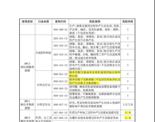 7.明確部分類(lèi)別廢物的涵蓋范圍。2016 年版《名錄》中對(duì)樹(shù)脂、乳膠、增塑劑生產(chǎn)過(guò)程中產(chǎn)生的危險(xiǎn)廢物的界定不清晰,導(dǎo)致涵蓋范圍過(guò)大。實(shí)際調(diào)研發(fā)現(xiàn)不同來(lái)源的上述廢物危險(xiǎn)特性存在較大的差異。根據(jù)危險(xiǎn)特性調(diào)查結(jié)果,本次修訂將其中危險(xiǎn)特性較小、環(huán)境風(fēng)險(xiǎn)可控的廢物從《名錄》中刪除。