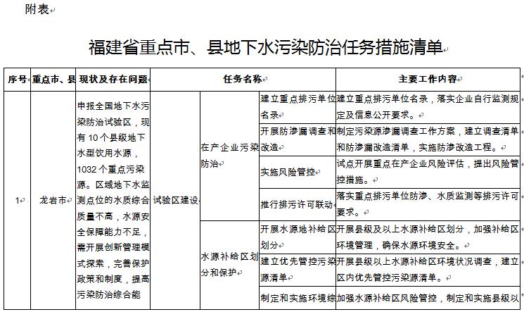 明確試驗區(qū)建設目標。在龍巖市開展國家地下水污染防治試驗區(qū)建設,通過試驗區(qū)建設,探索形成可復制、可推廣的管理模式,以點帶面、輻射帶動全省開展地下水污染防治工作。同時,總結(jié)地下水污染治理修復技術,探索創(chuàng)新地下水生態(tài)環(huán)境管理制度,推進地下水治理體系和能力建設。