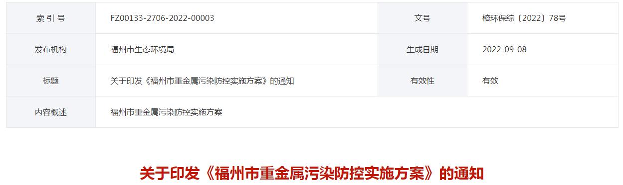 附件:福州市重金屬污染防控實施方案